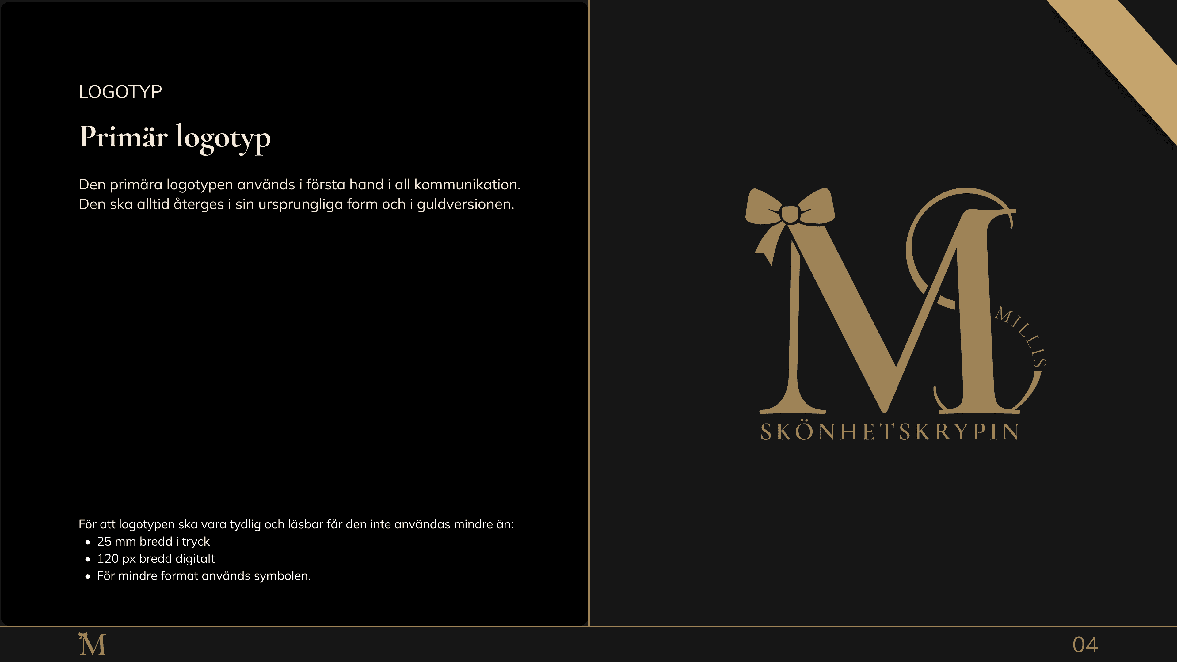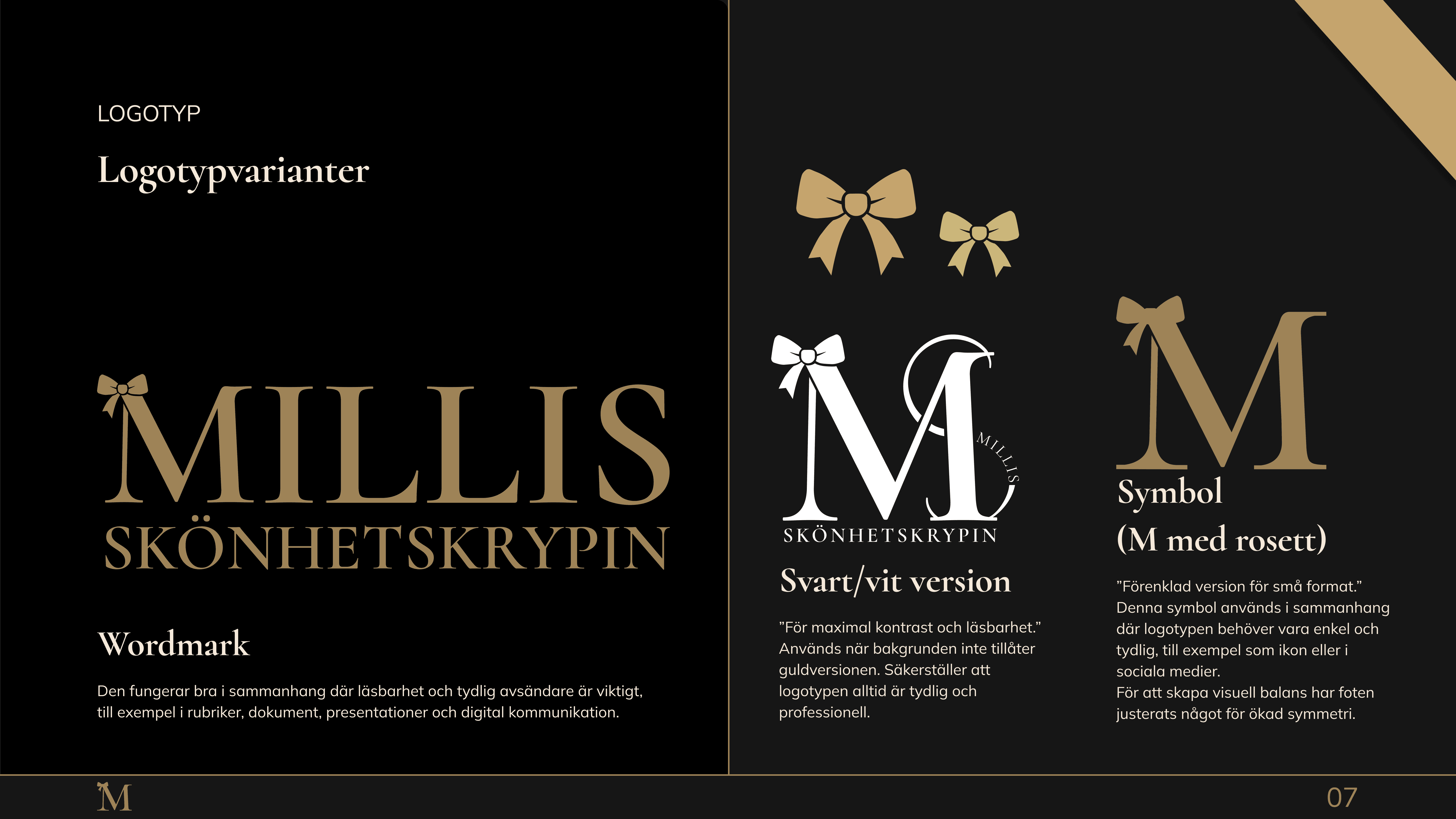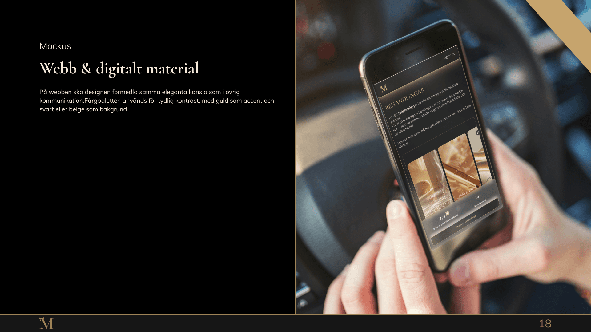 Framtaget uttryck med fokus på exklusivitet, lugn och förtroende, anpassat för skönhetsbranschen.
