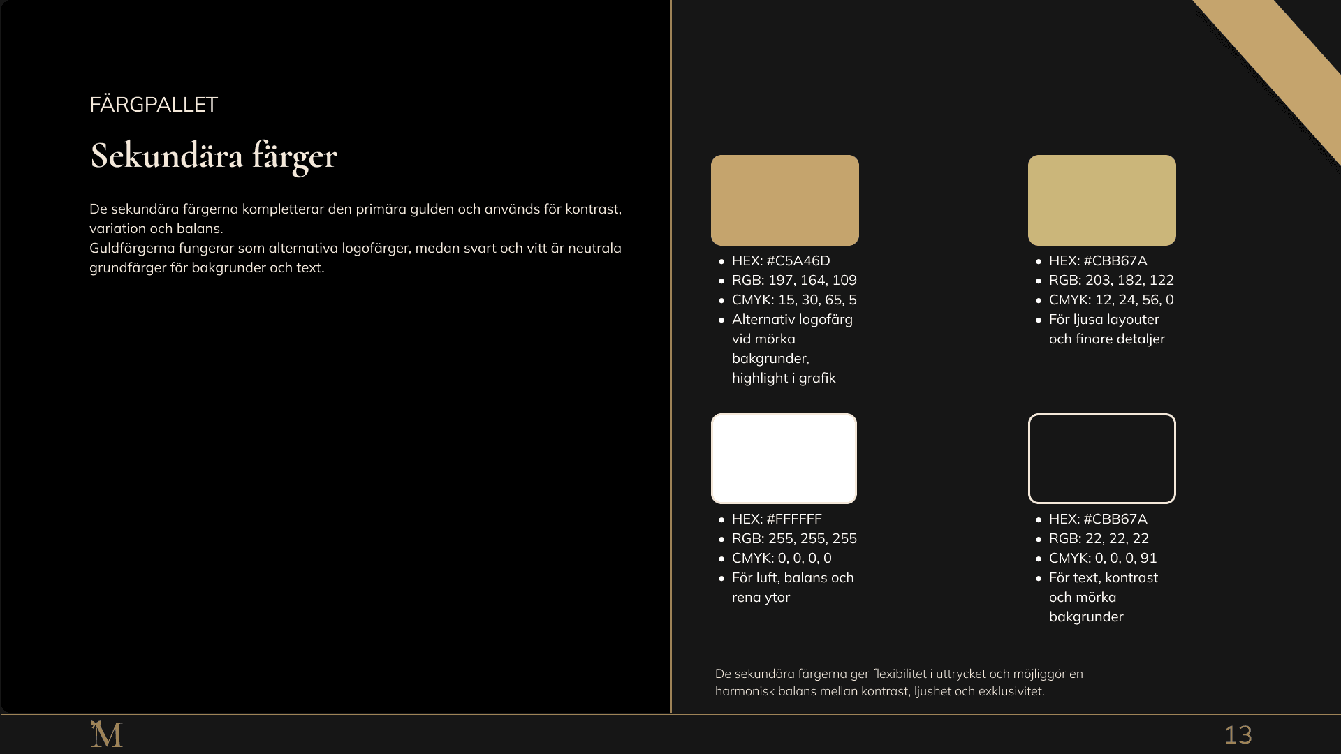 Färgpalett, typografi och bildstil som säkerställer ett konsekvent uttryck i kommunikation och marknadsföring.